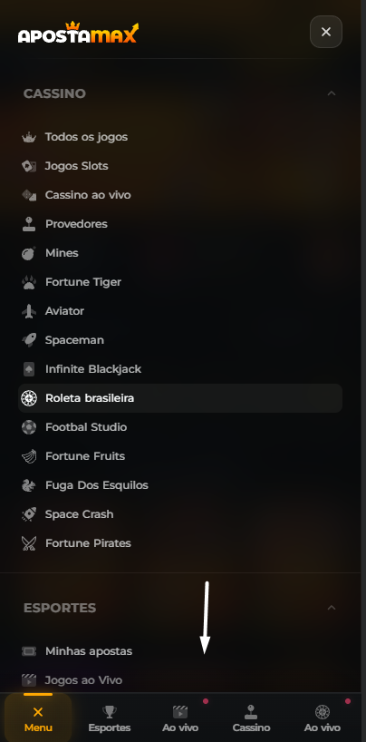 2. Role a tela até o final do menu.