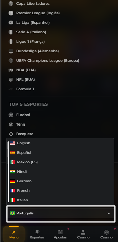 Pronto! Após selecionar o idioma desejado, toda a plataforma será exibida no idioma escolhido.