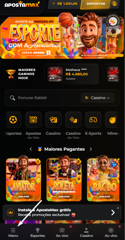 1. Clique na aba Menu.
